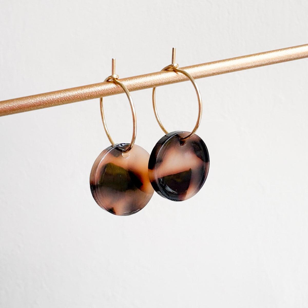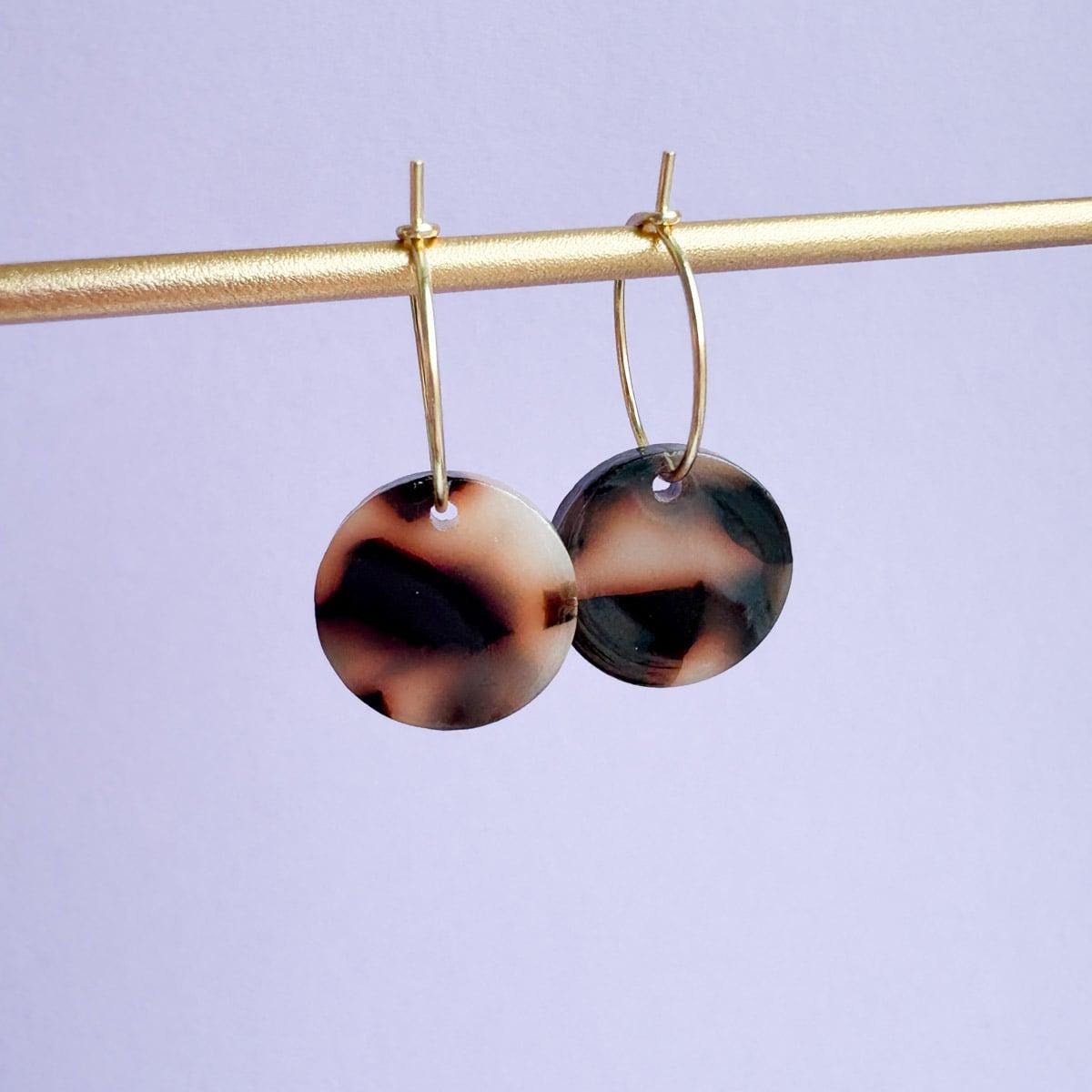 Kleine Creolen mit rundem Anhänger *LEO* Kreolen mit beige-braun gemustertem Anhänger
