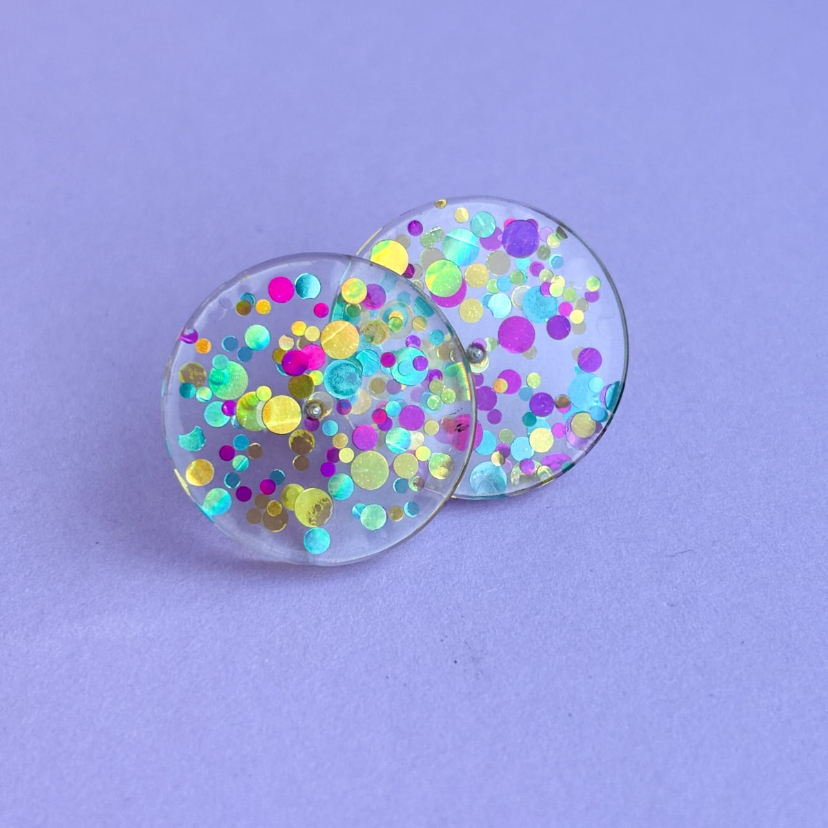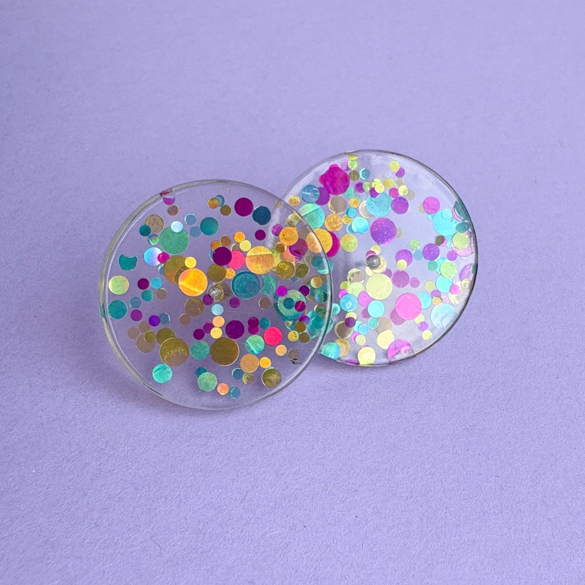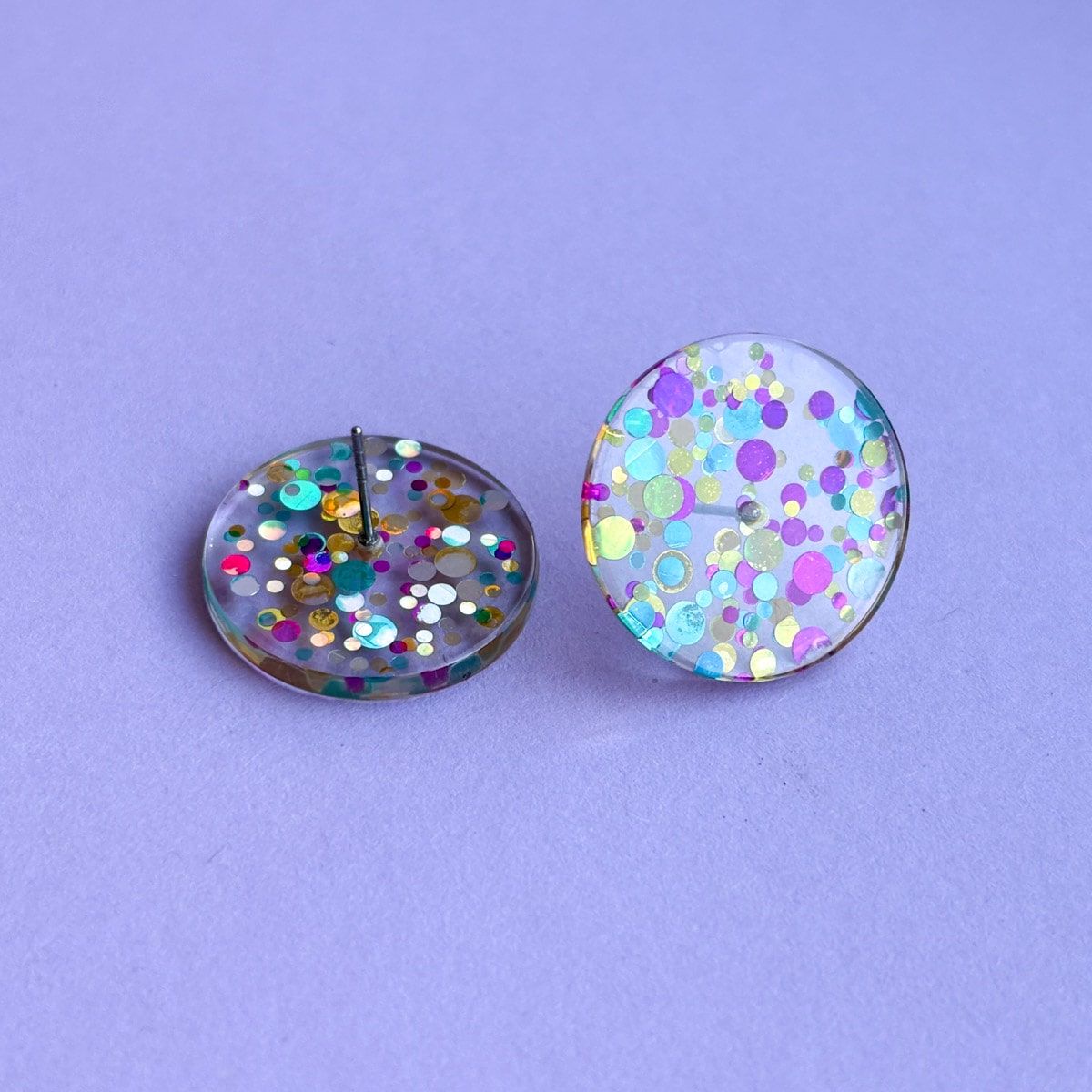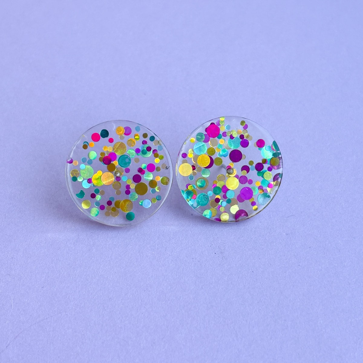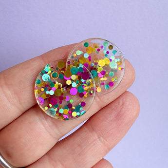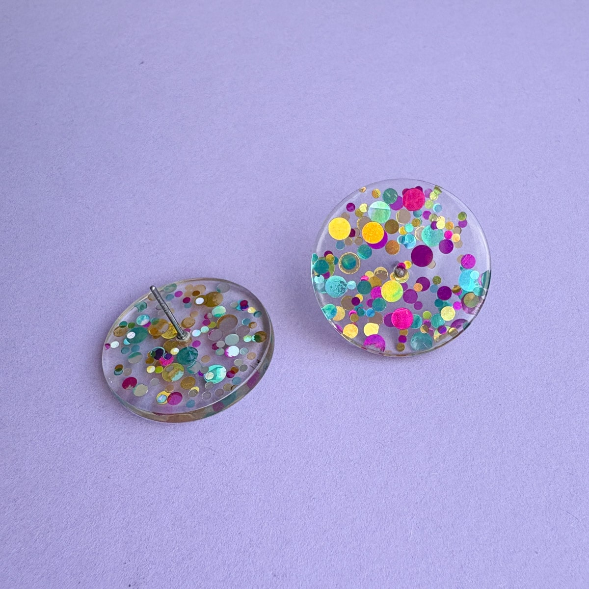 Statement Ohrstecker *GLITZER KONFETTI* türkisgrün/pink/golden