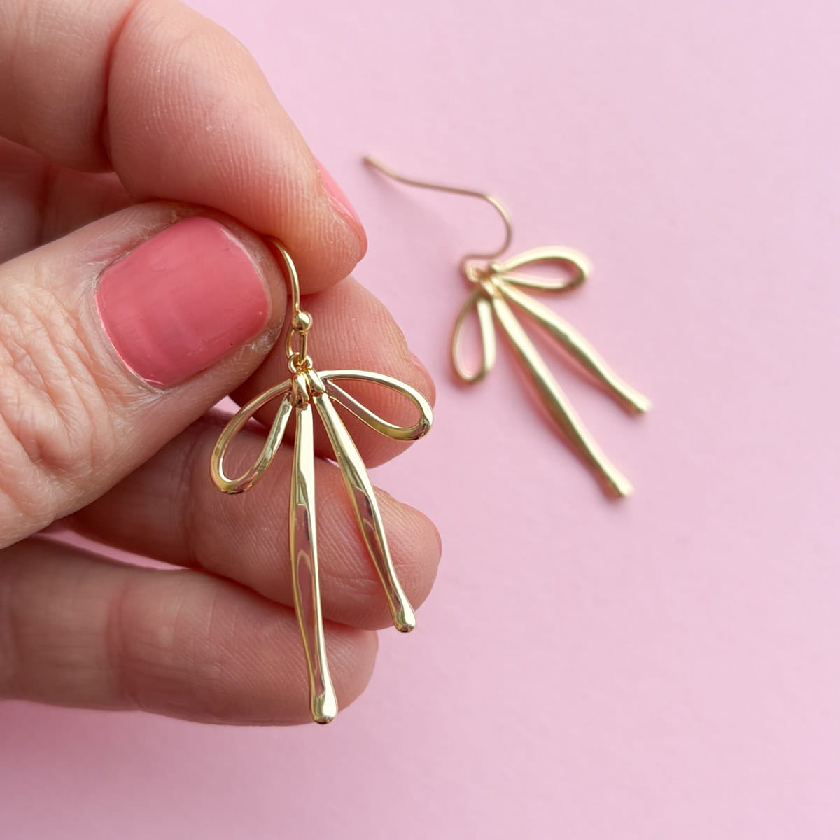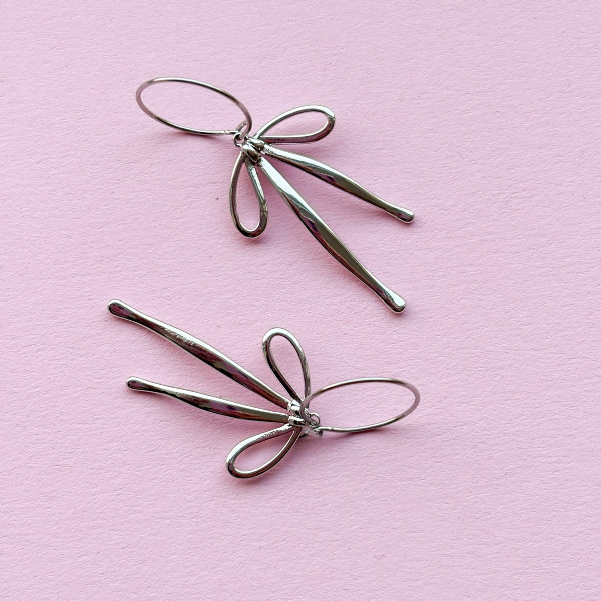 Du kannst sie genau so tragen, wie es zu dir passt: als zarte Ohrhänger mit Ohrhaken oder als moderne Schleifen Creolen. Zwei Formen, ein Gefühl – Leichtigkeit mit Stil.