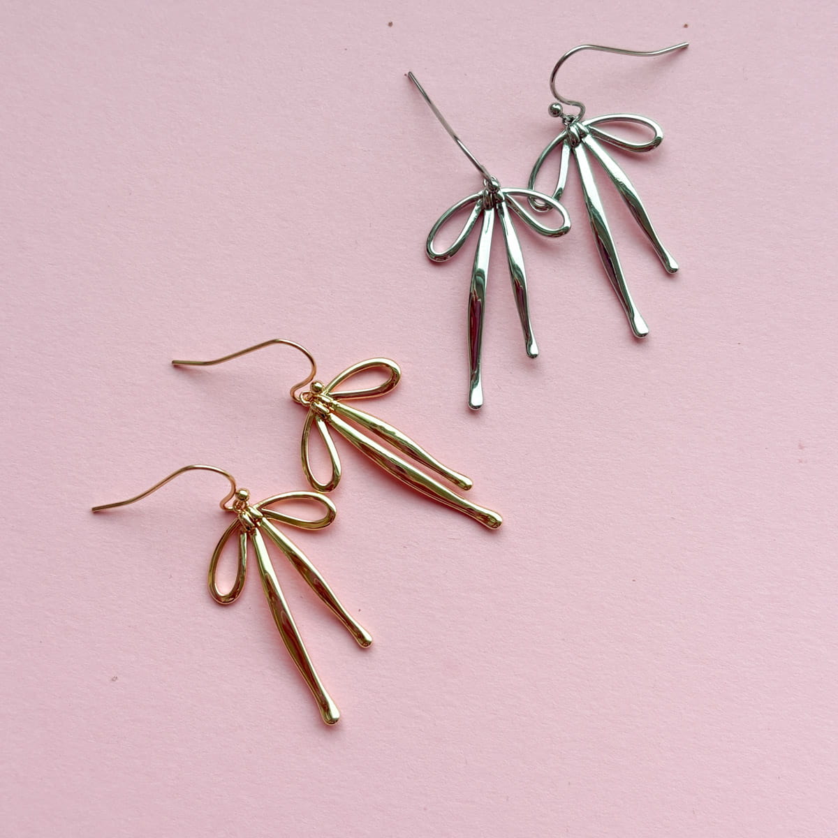 Diese Schleifenohrringe sind feinsinnig, aber wirkungsvoll. Die zarte Schleifenform bringt Bewegung ans Ohr und verbindet verspielte Eleganz mit einem klaren, modernen Design. Ob goldfarben oder silberfarben – diese Ohrringe setzen ein Statement, ohne laut zu sein.