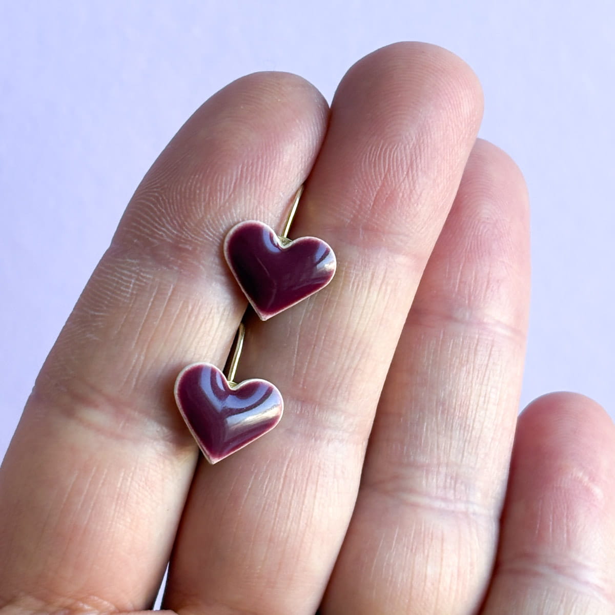Diese Herzen brennen nicht laut – sie glühen leise. Das tiefe, geflammte Rot bekommt beim Glasieren seine ganz eigene Struktur: warm, lebendig, ein bisschen unvorhersehbar. Genau wie echte Emotionen. Jedes Herz forme und glasiere ich in meinem Leipziger Atelier von Hand, bevor es zweimal gebrannt wird. So entsteht ein Farbspiel, das es nur einmal gibt – jedes Paar ein echtes Einzelstück.