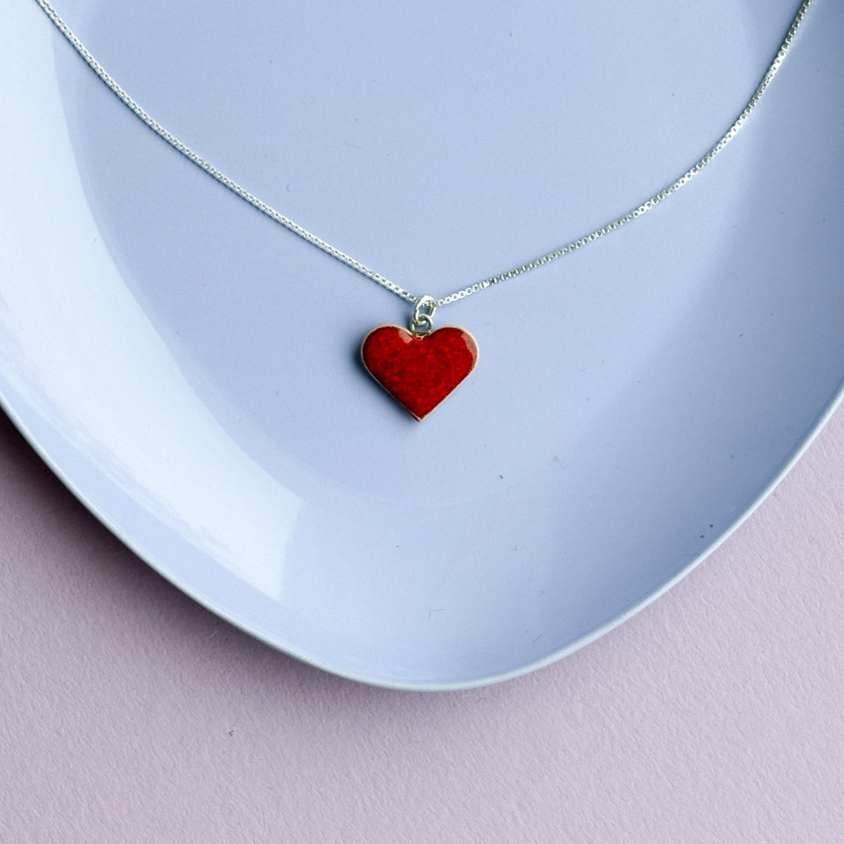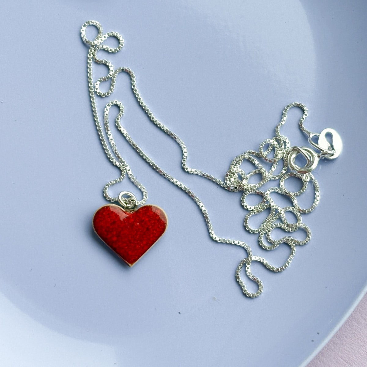 Silberkette mit kleinem Keramikherz Anhänger - Unikat - limited Edition Valentinstag