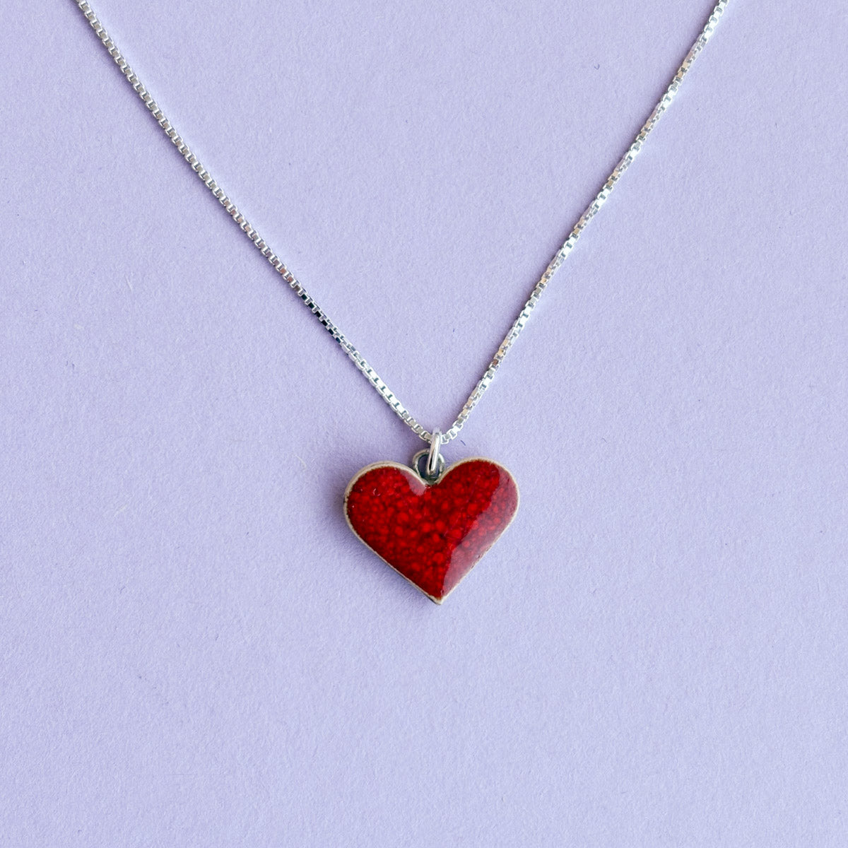 Silberkette mit kleinem Keramikherz in Rot