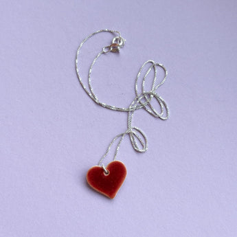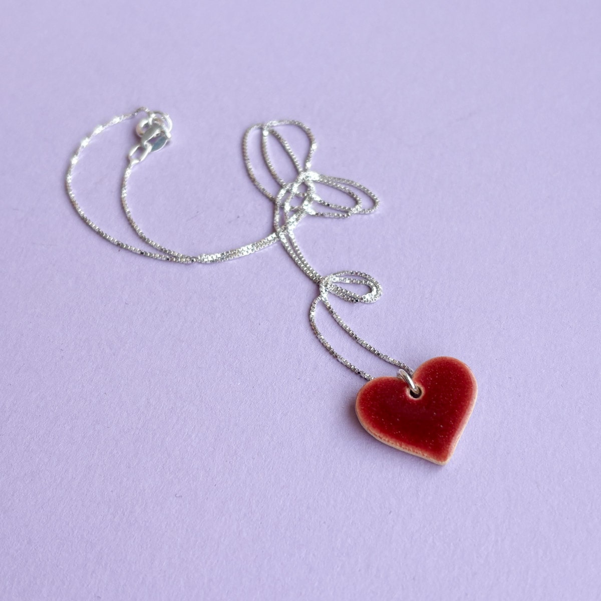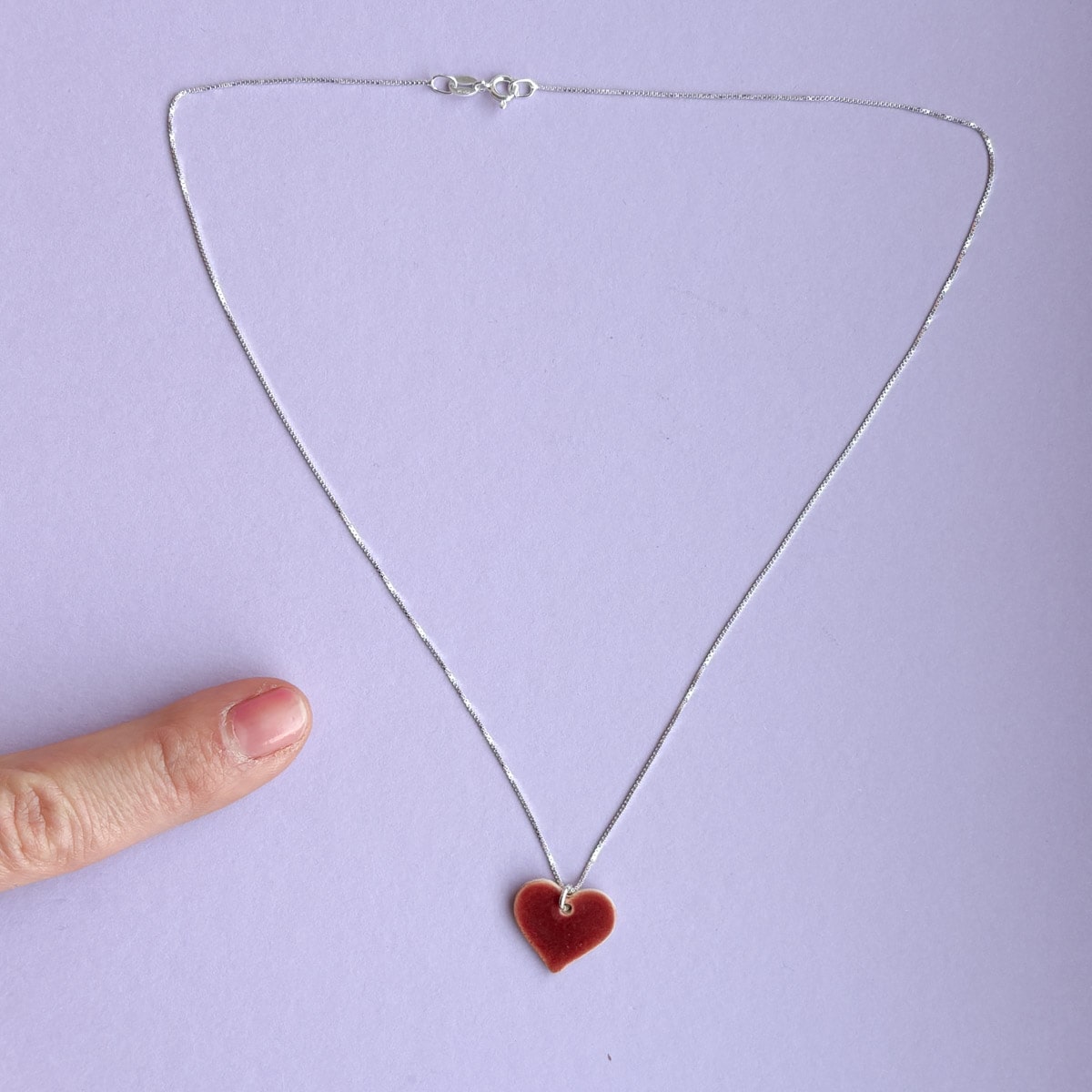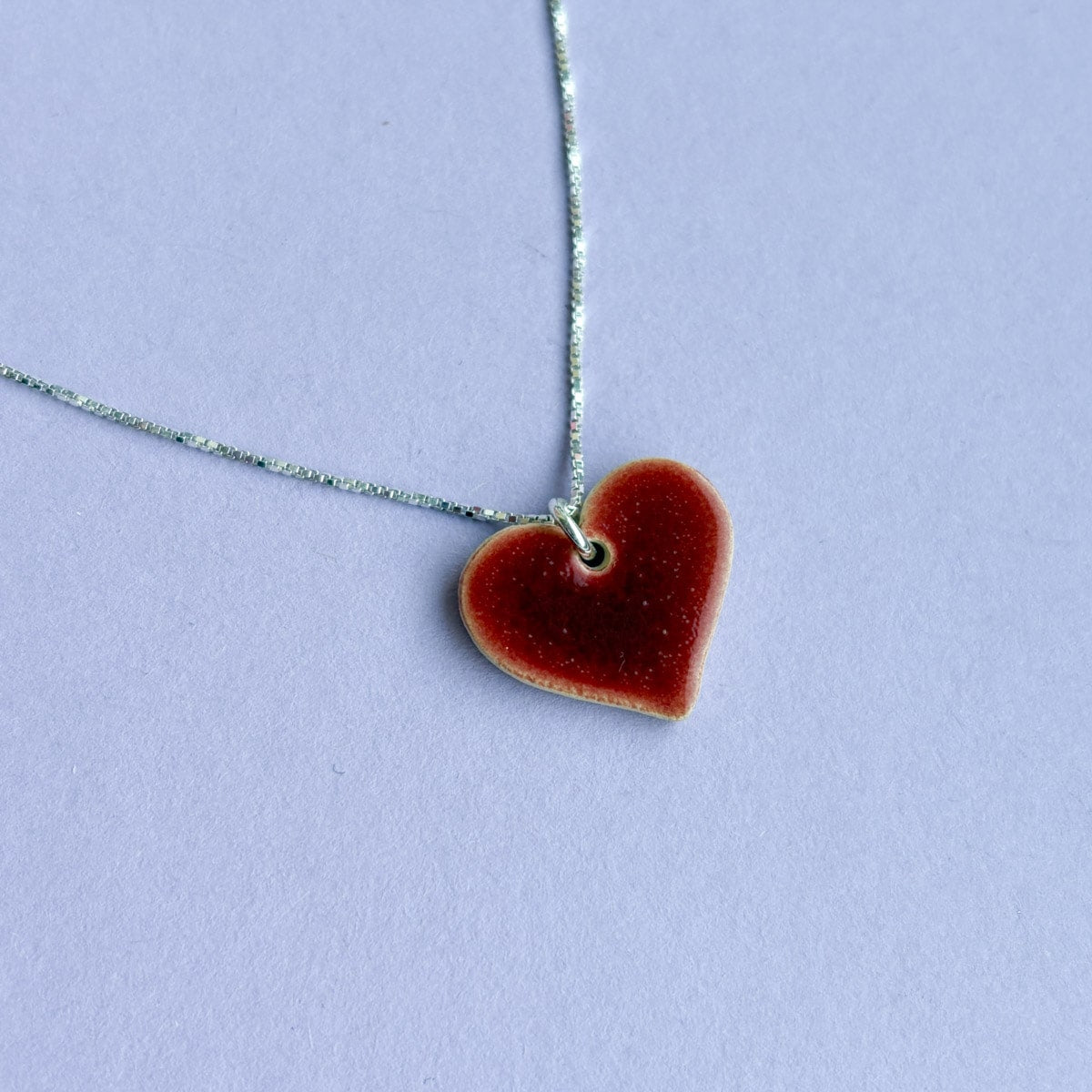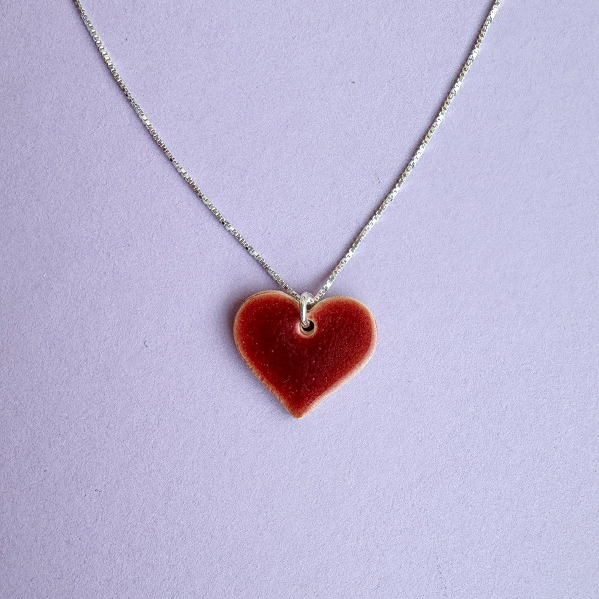 Silberkette mit Herzanhänger aus Keramik- rostrote Glasur