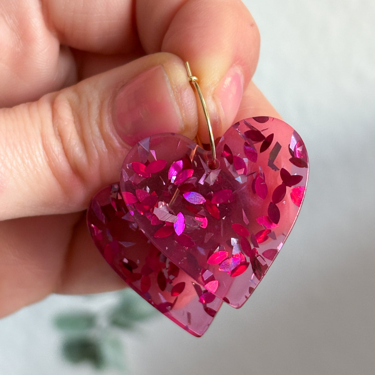 Rosa Herzohrringe mit Glitzer – moderne Statement Creolen mit Herz