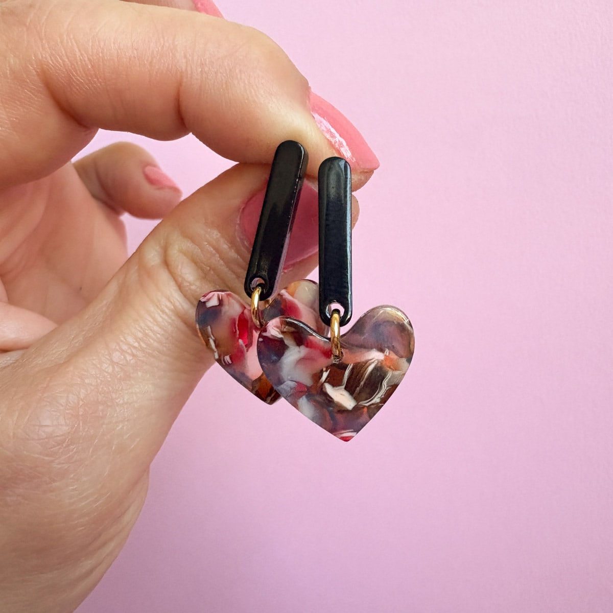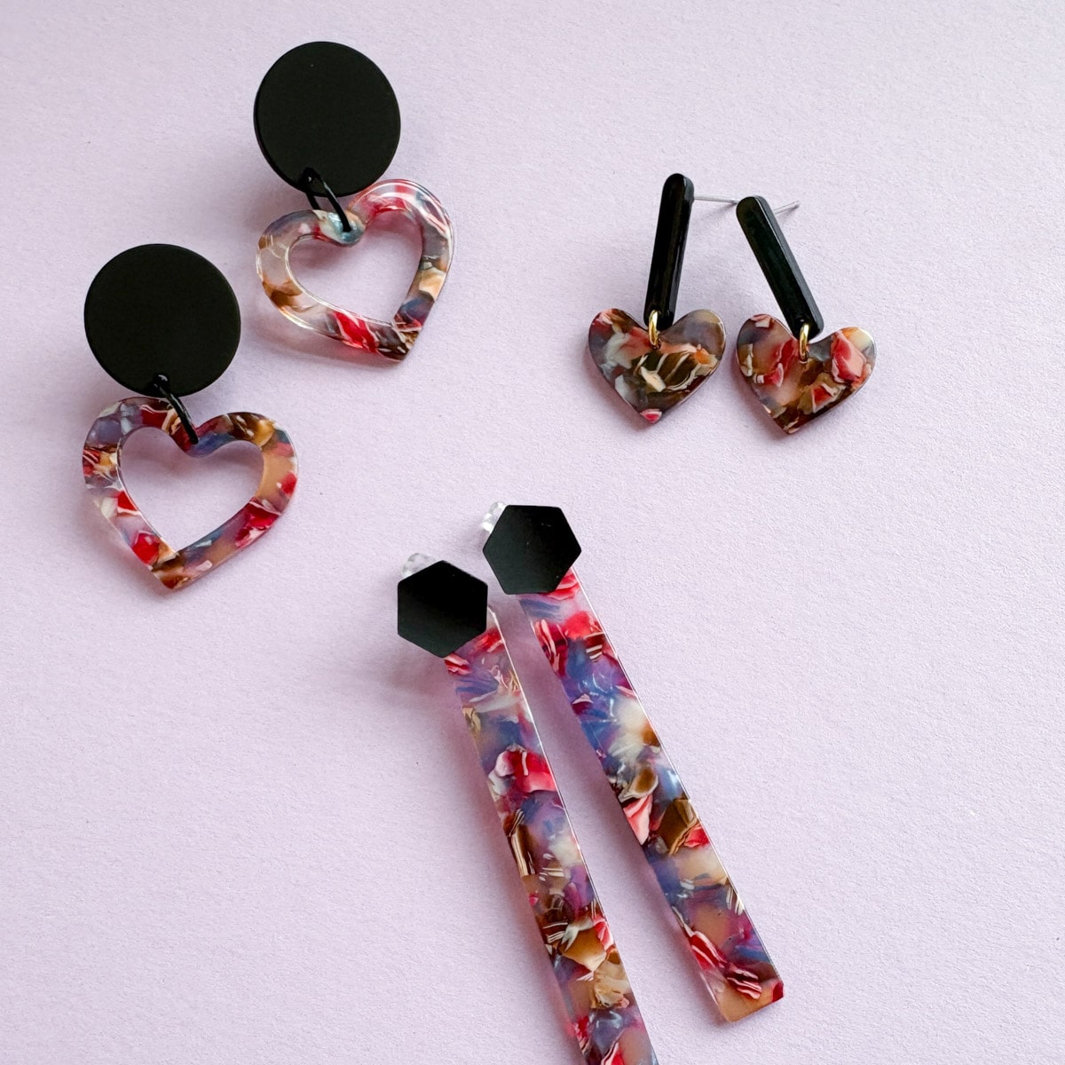 Neben meinem Keramikschmuck fertige ich bei Hermoosa auch Ohrringe aus Acryl, Acetat und Holz – immer mit Liebe zum Detail.