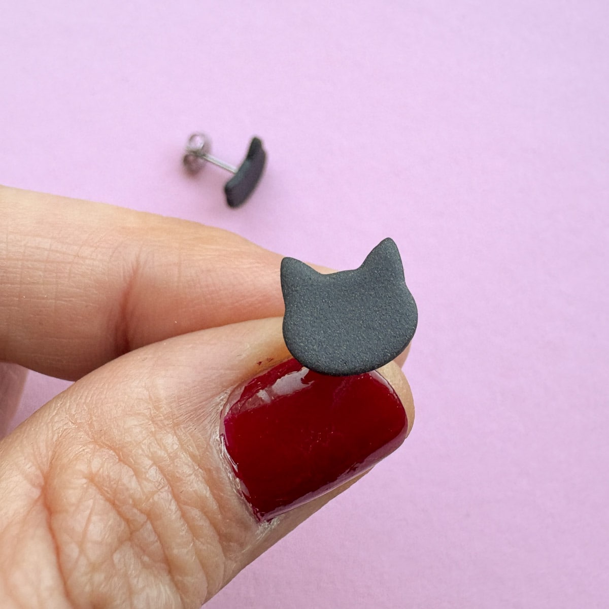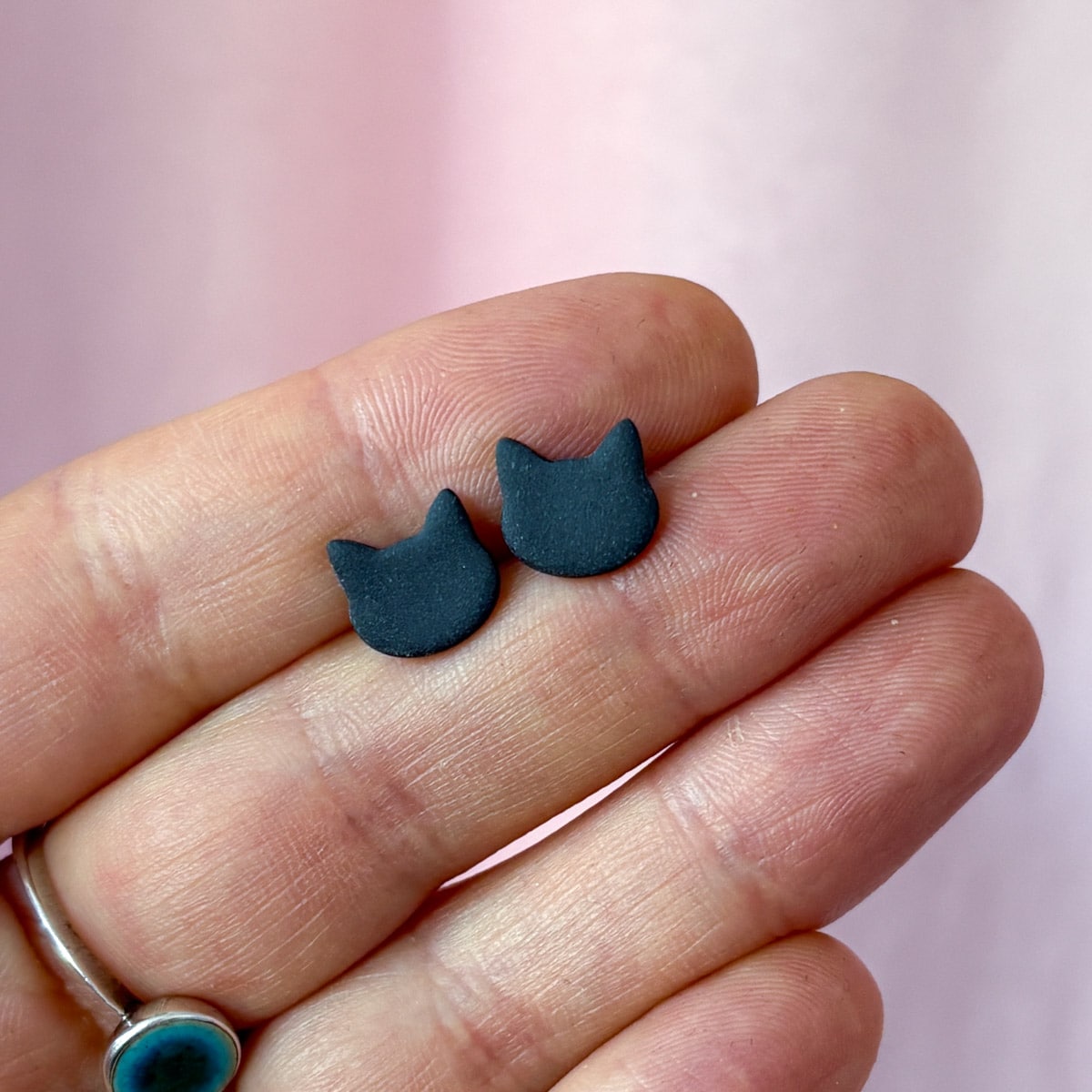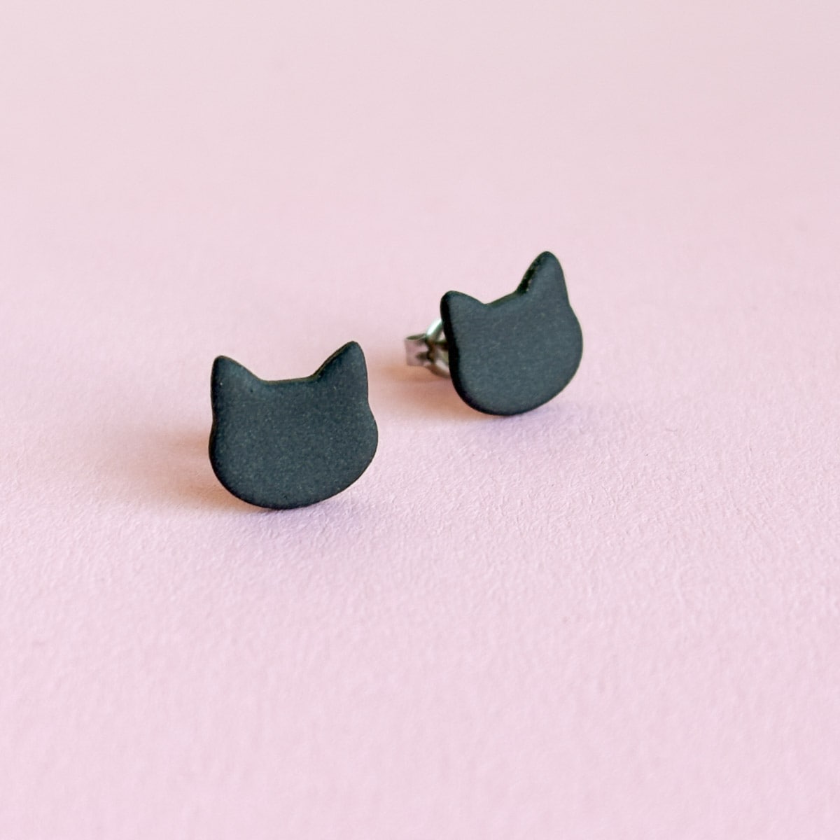 Katzen Ohrstecker â Schwarz mattes Porzellan | Dark Collection đââŹâš