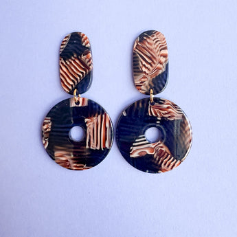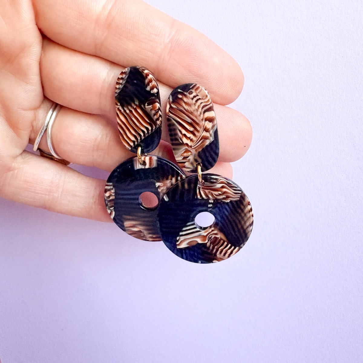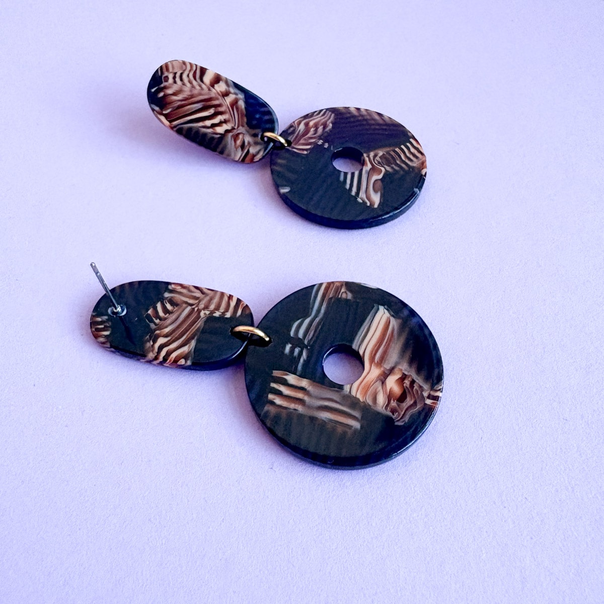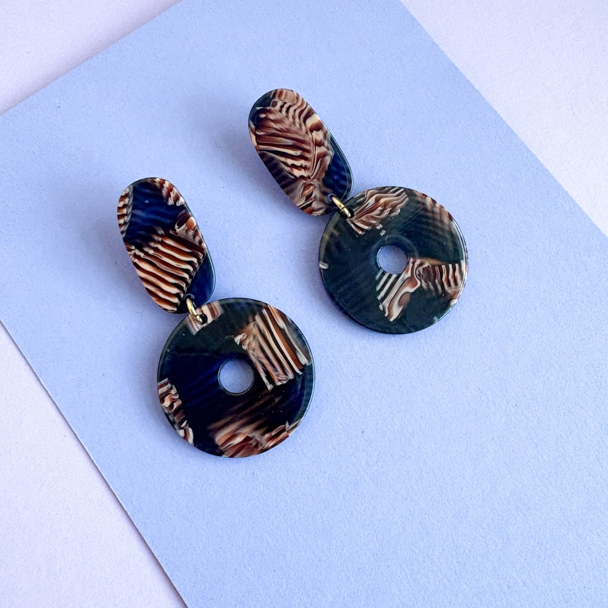Große Statement-Ohrringe *DUNKELBLAU BEIGE GEMUSTERT*