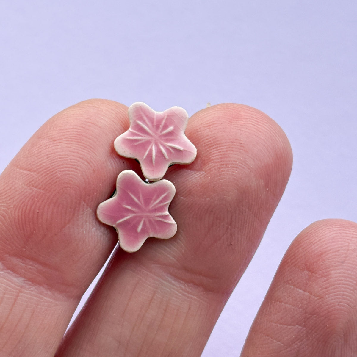(modelliert- beschliffen-1.Brand (900°C) - Glasurauftrag-2.Brand ( über 1000°C) - Montage der Ohrstecker)