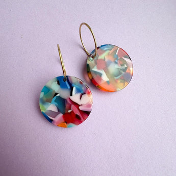 Diese farbenfrohen Ohrringe bringen Leben in jedes Outfit – leuchtend, modern und mit echtem Statement-Charakter. Die Kombination aus goldenem Edelstahl und bunt gemustertem Acryl sorgt für einen einzigartigen Look, der zu jeder Jahreszeit passt.