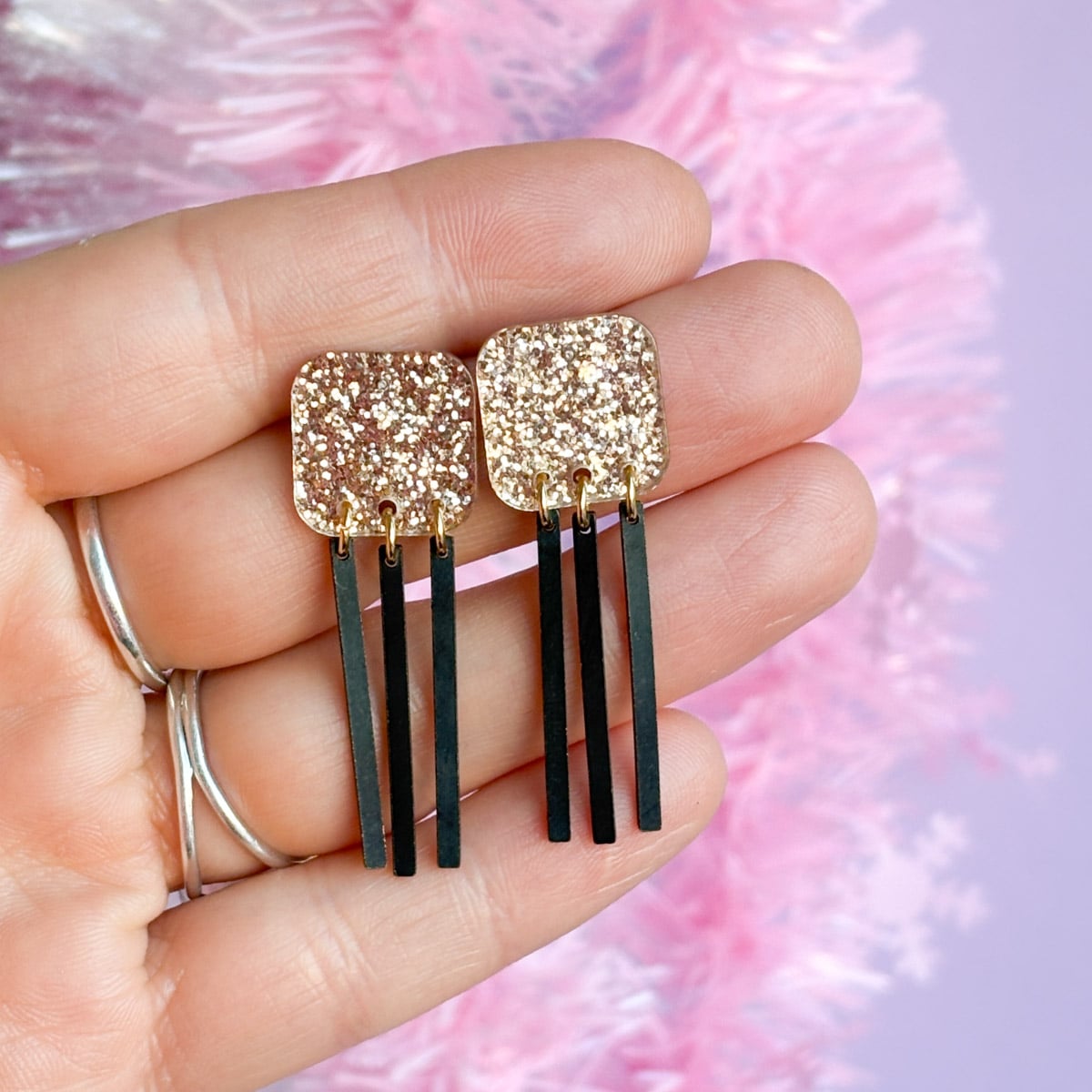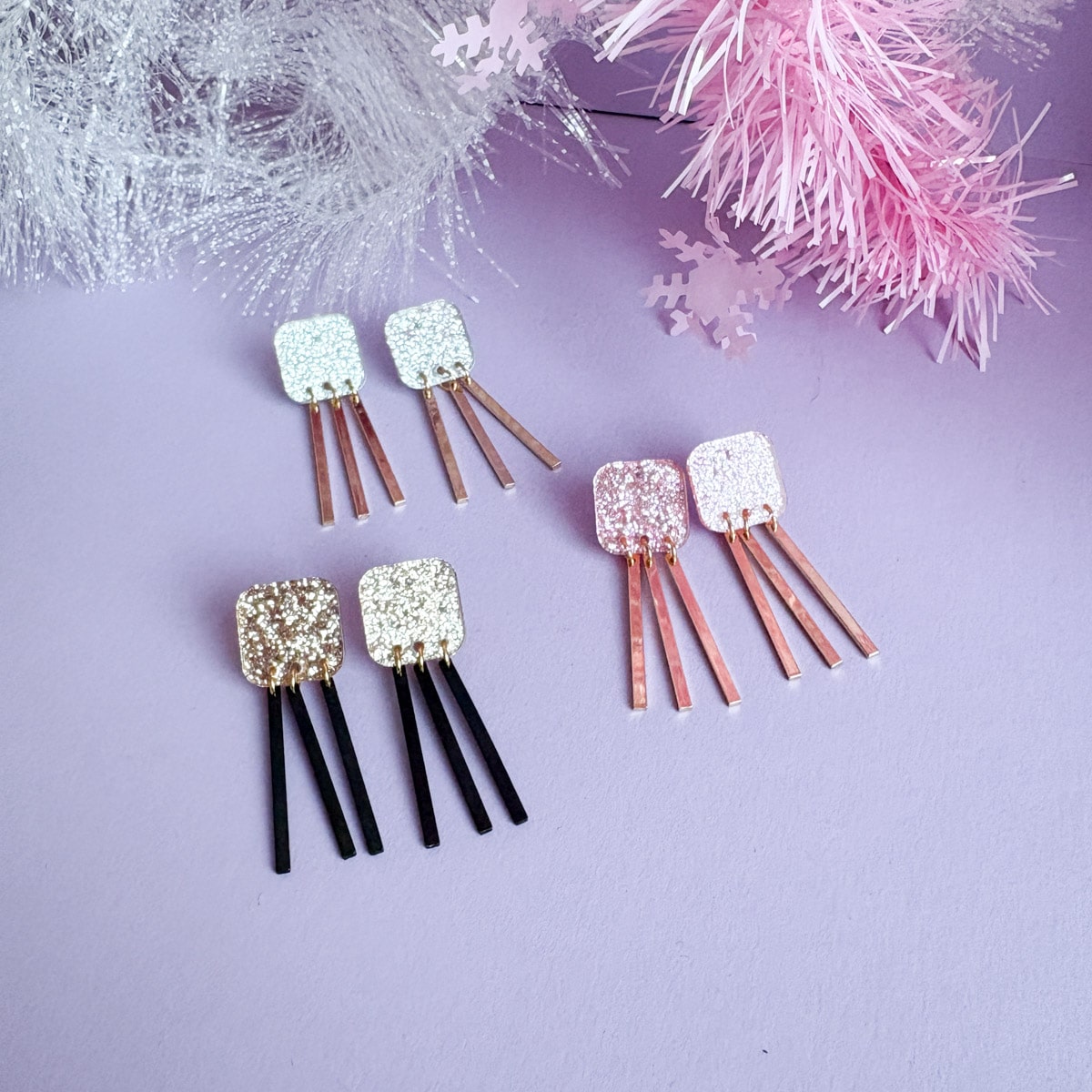 Glitzerohrringe mit beweglichen Stäbchen – Lametta Look