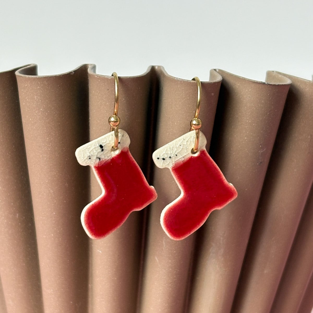 Weihnachtliche Keramikohrringe: Lebkuchenmann, Weihnachtsstiefel & Tannenbaum