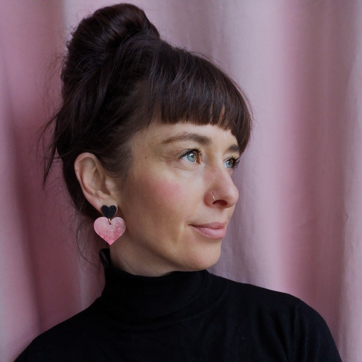 - Design: Zweiteilige Herz-Ohrringe in Schwarz & Nude-Rosa