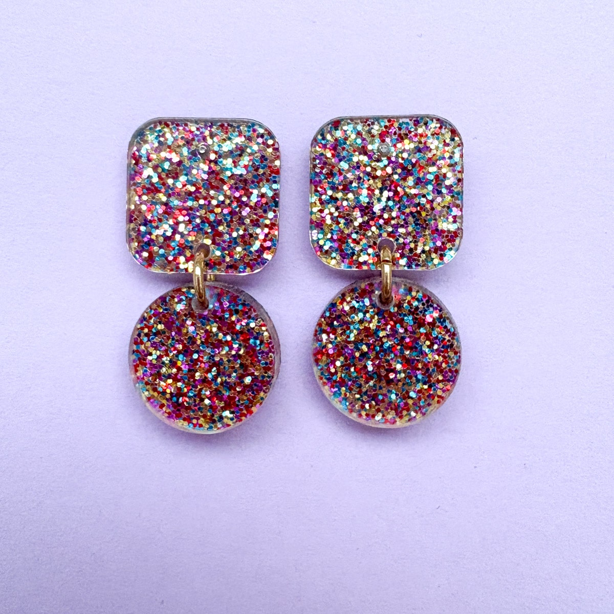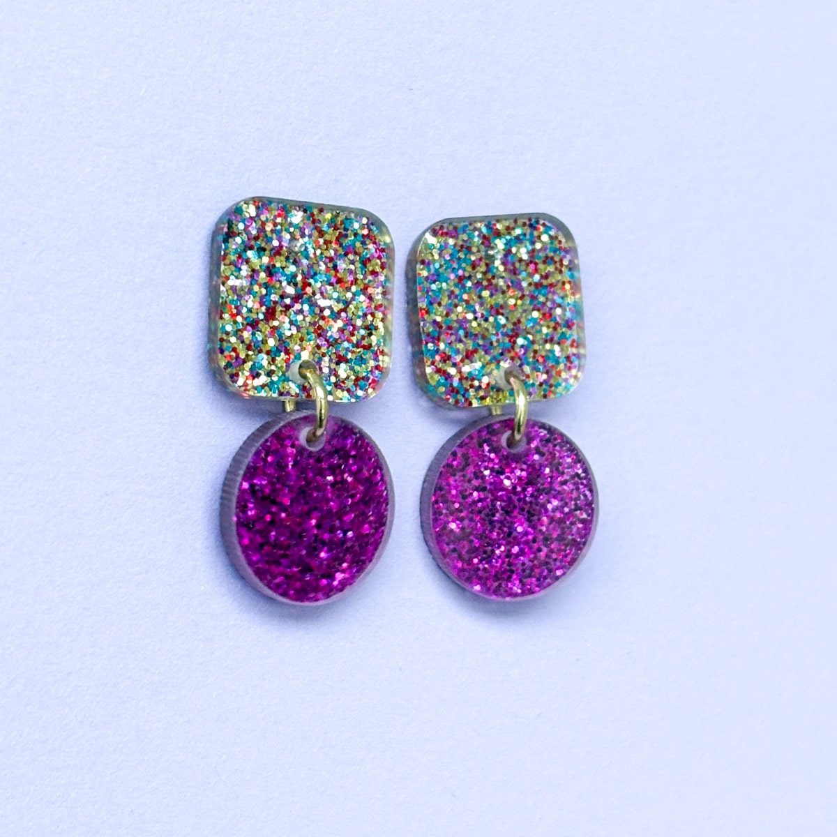 Diese Ohrringe sind wie ein Farbknall mitten im Alltag. Glitzer trifft auf klare Formen, Konfetti-Vibes auf modernes Design – ein Schmuckstück, das nicht flüstert, sondern lächelt. Sie bringen Farbe ins Outfit, Leichtigkeit ins Gefühl und genau die Portion Glitzer, die man manchmal einfach braucht.