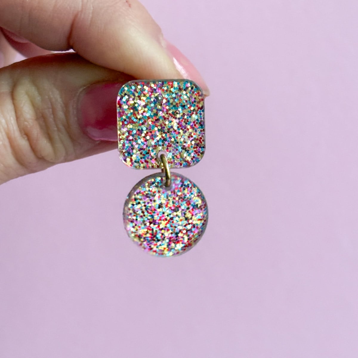 - Moderner Acrylschmuck mit Glitzer-Konfetti