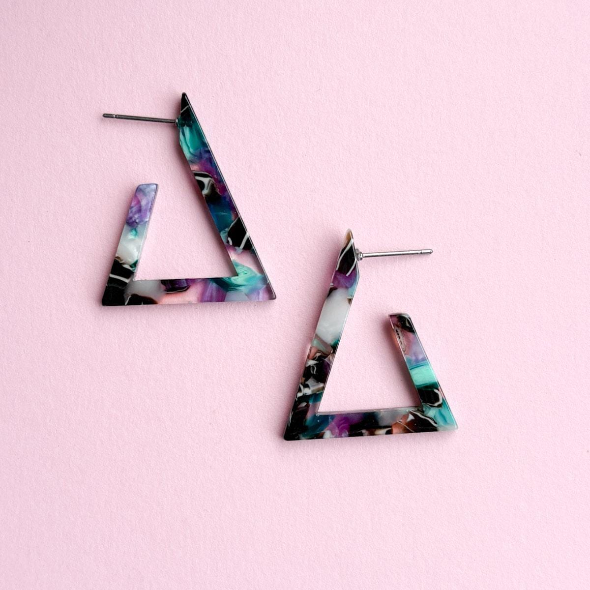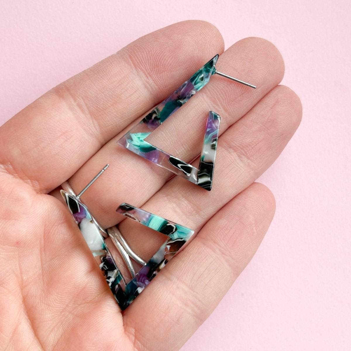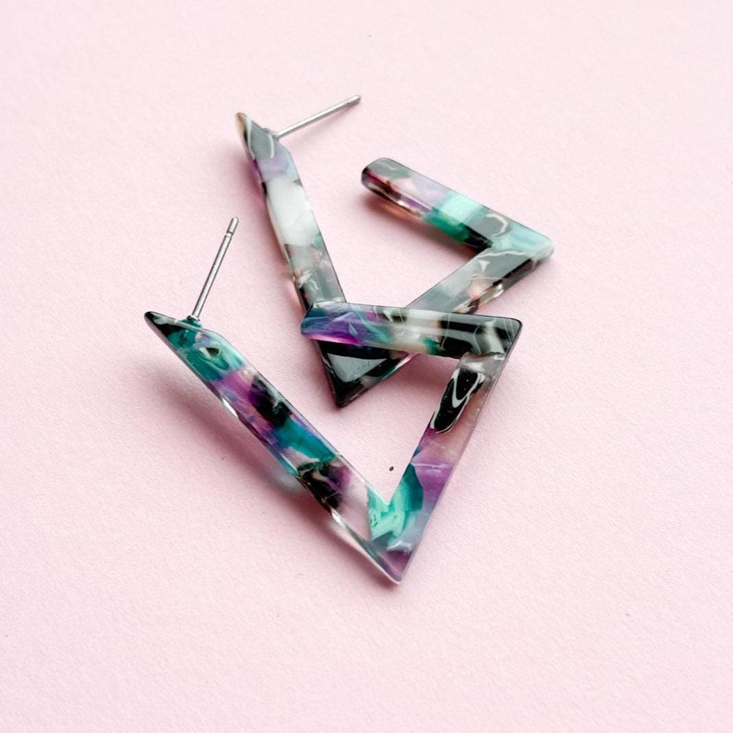 Dreieckige Statement-Creolen in Türkis, Lila & Schwarz – 90s Vibes reloaded