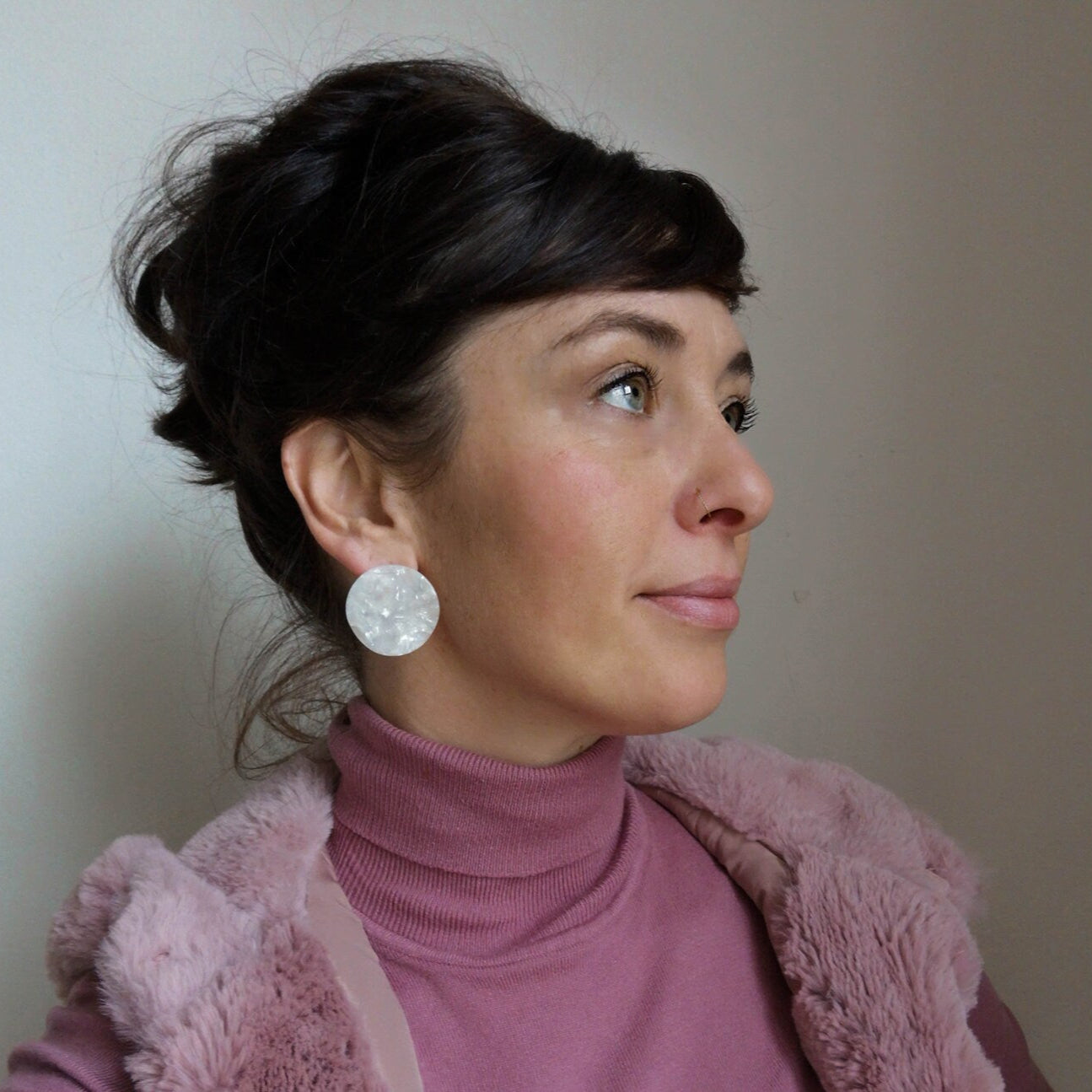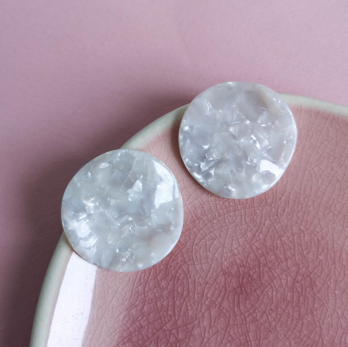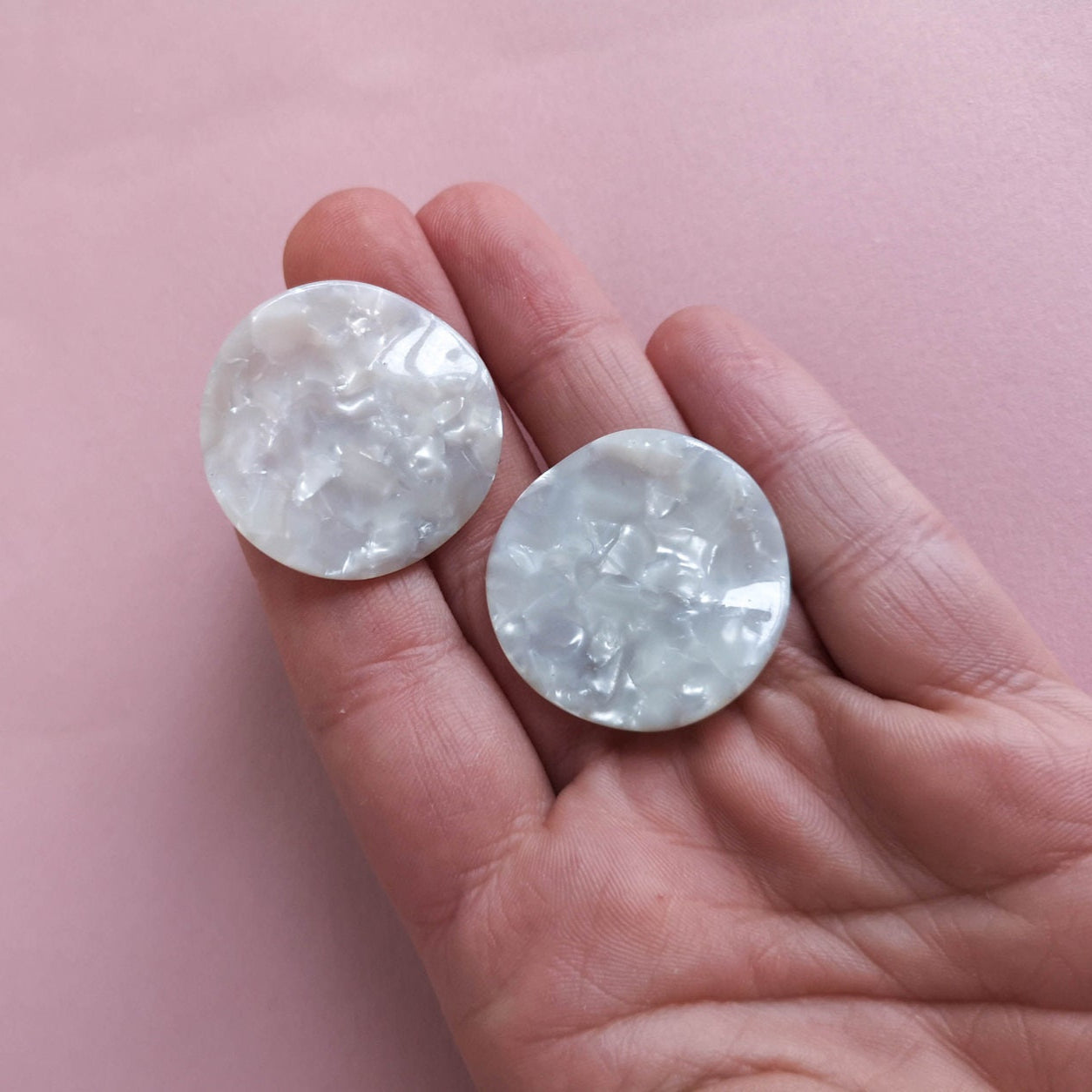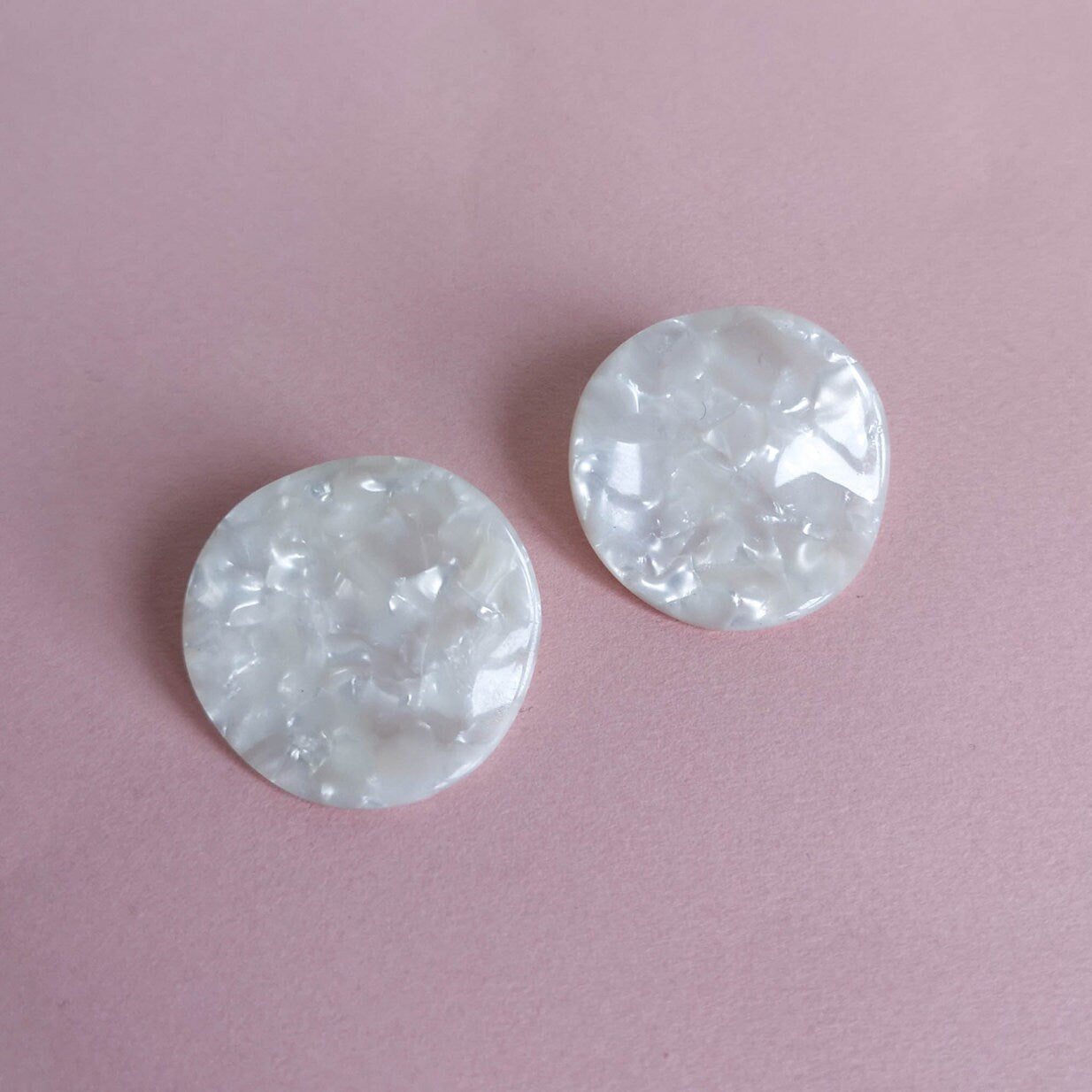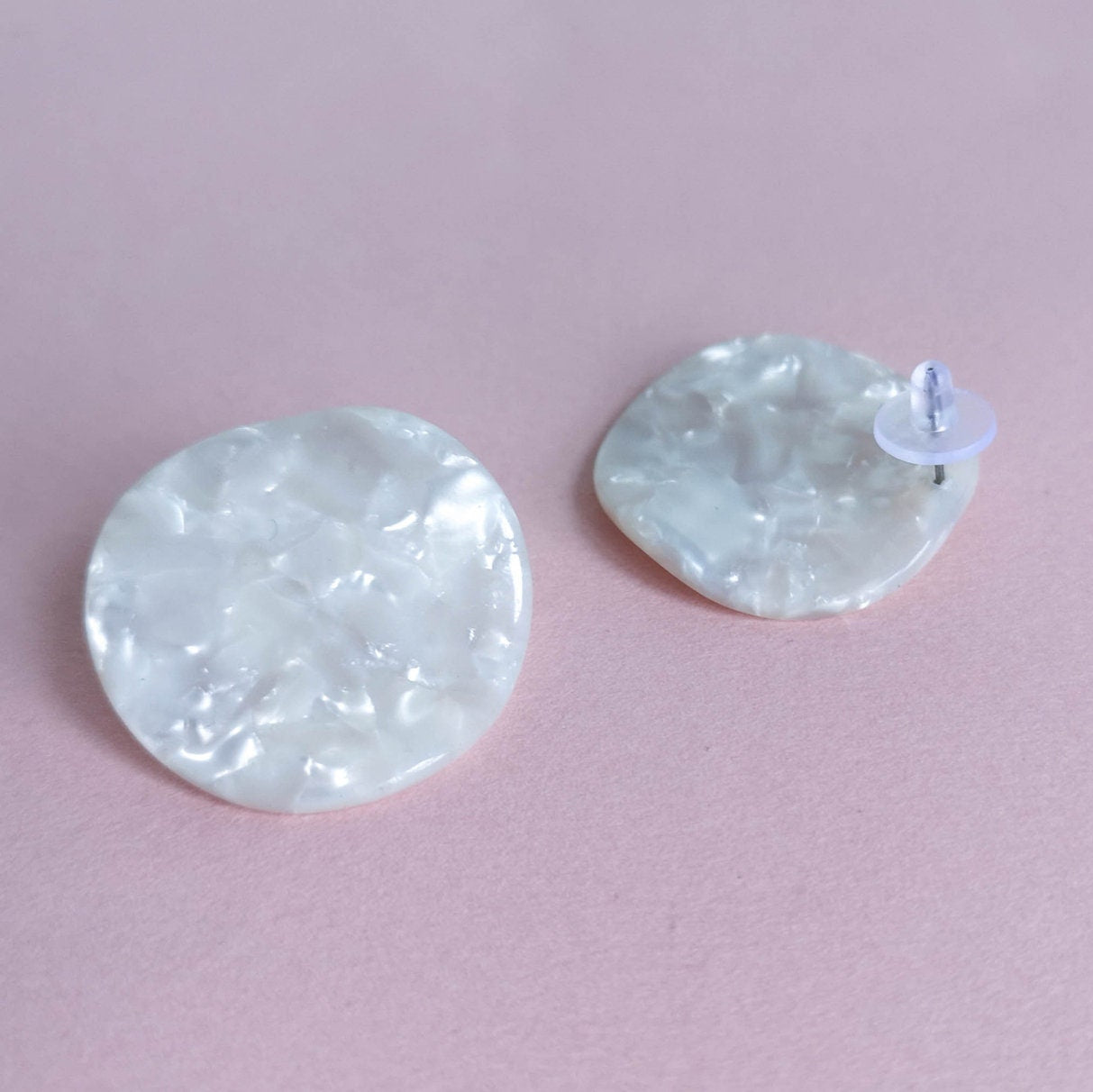 Elegante Riesenohrringe in marmoriertem Weiß – ein modernes Highlight, das jedes Outfit zum Strahlen bringt. Mit ihrem cleanen Look setzen sie ein starkes Fashion-Statement.