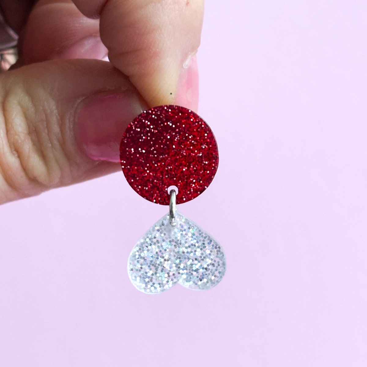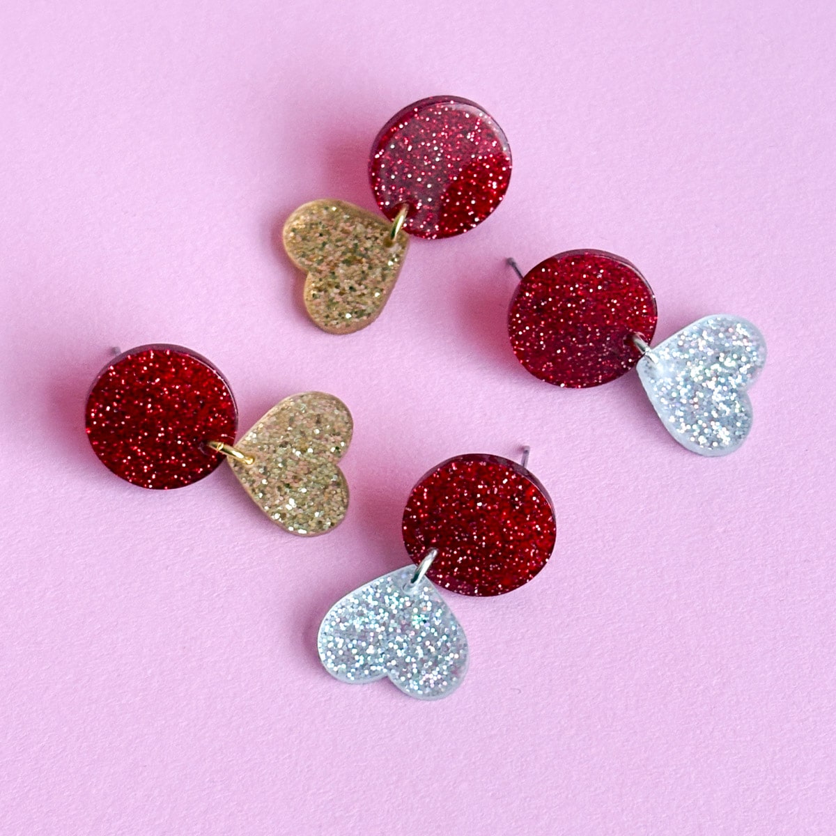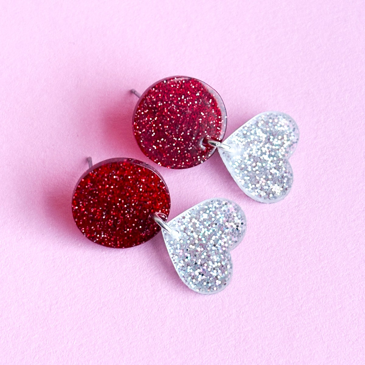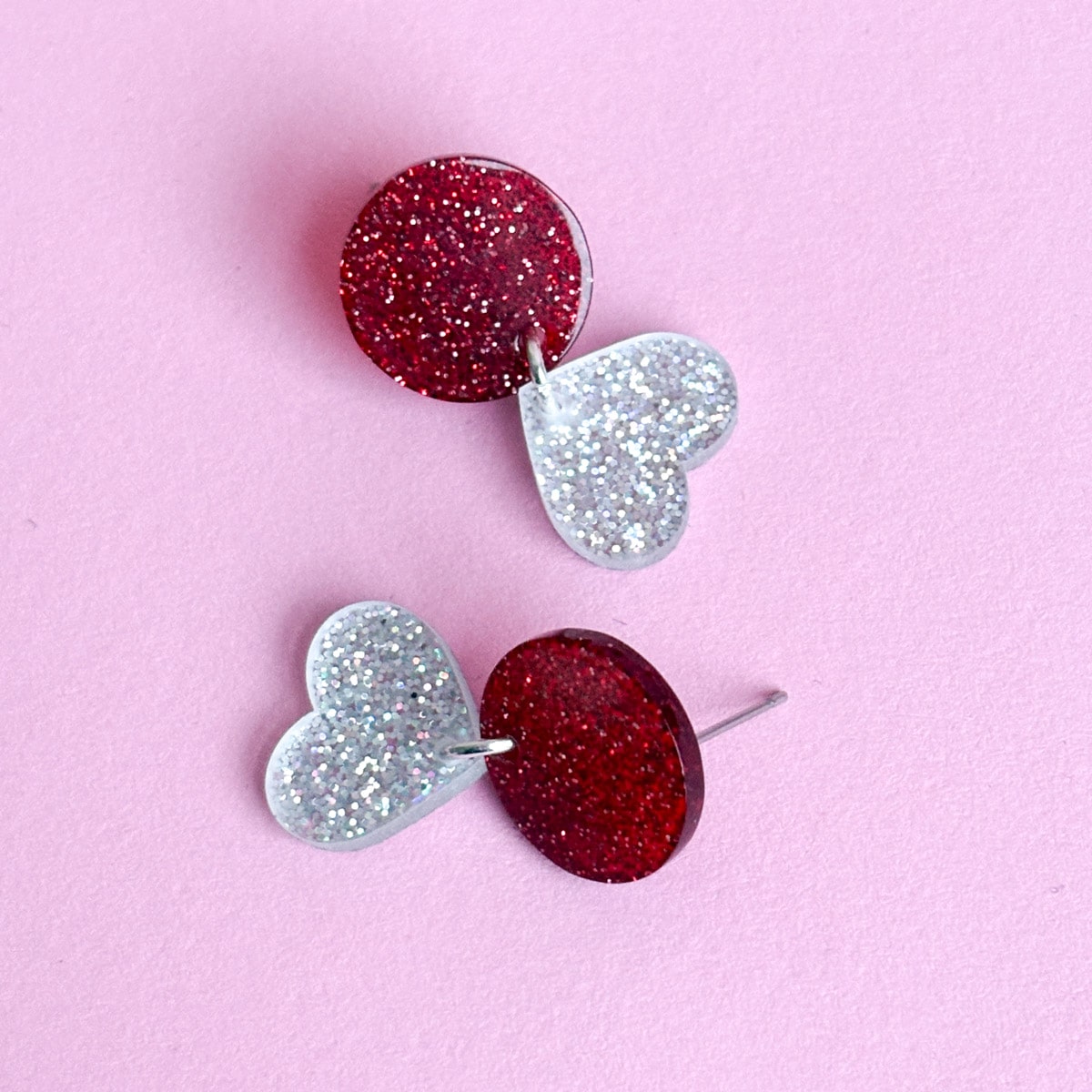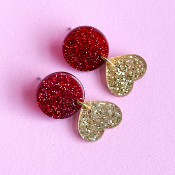- Design: Zweiteilige Glitzer Ohrringe in dunkelrot & funkelndem Gold- oderSilberglitzer