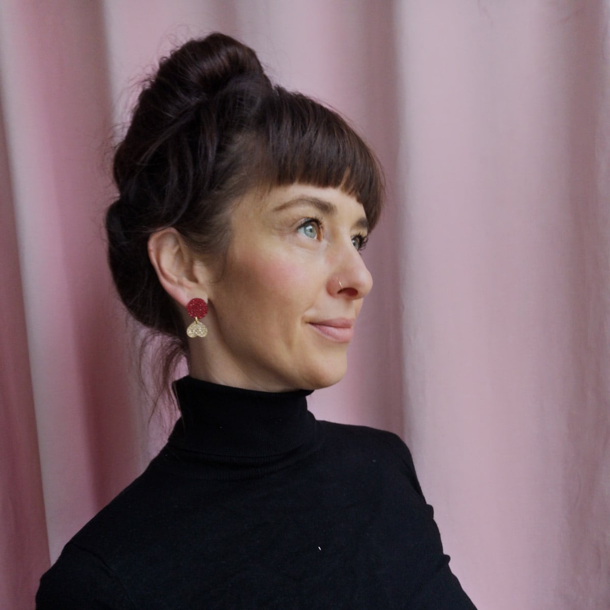 Die Keramikschmuckstücke sind überwiegend filigran und eher kleiner gehalten Die Statement-Ohrringe aus Acryl und Acetat dürfen dagegen bewusst größer, auffälliger und expressiver sein. So entsteht ein spannendes Zusammenspiel aus Zurückhaltung und Präsenz – immer klar gestaltet und ausgewogen im Ausdruck.