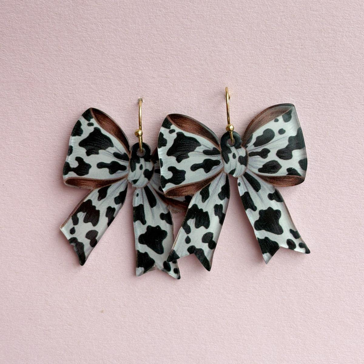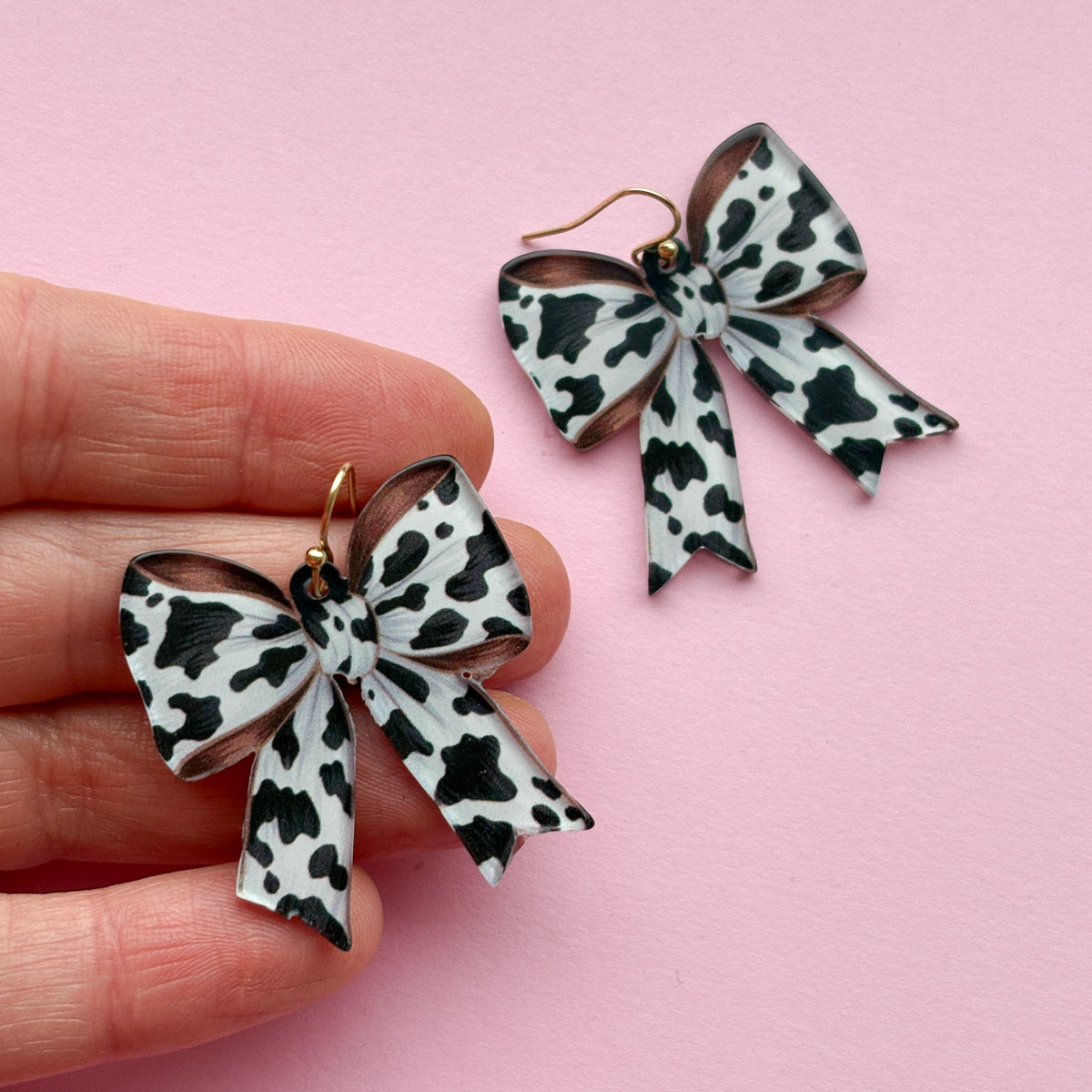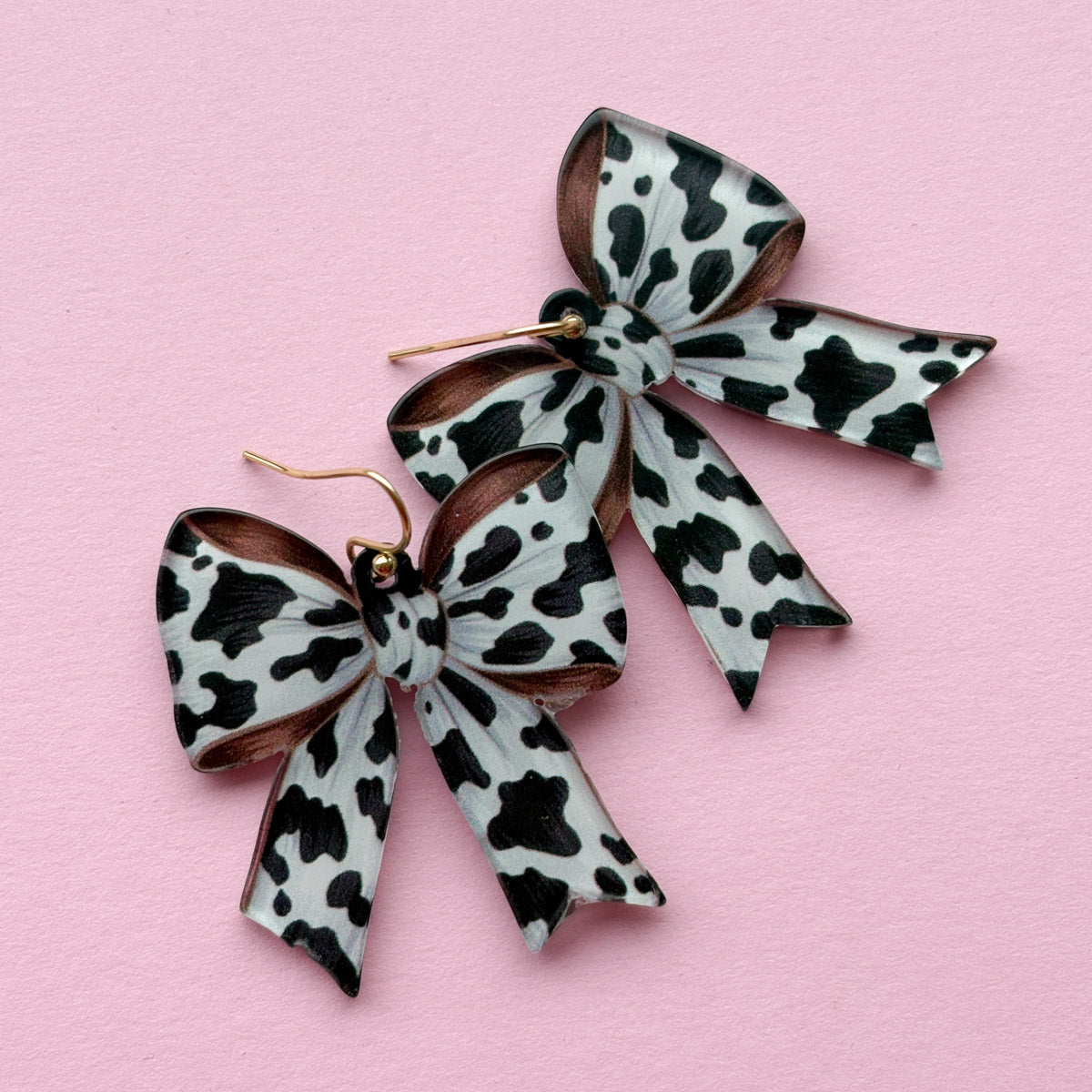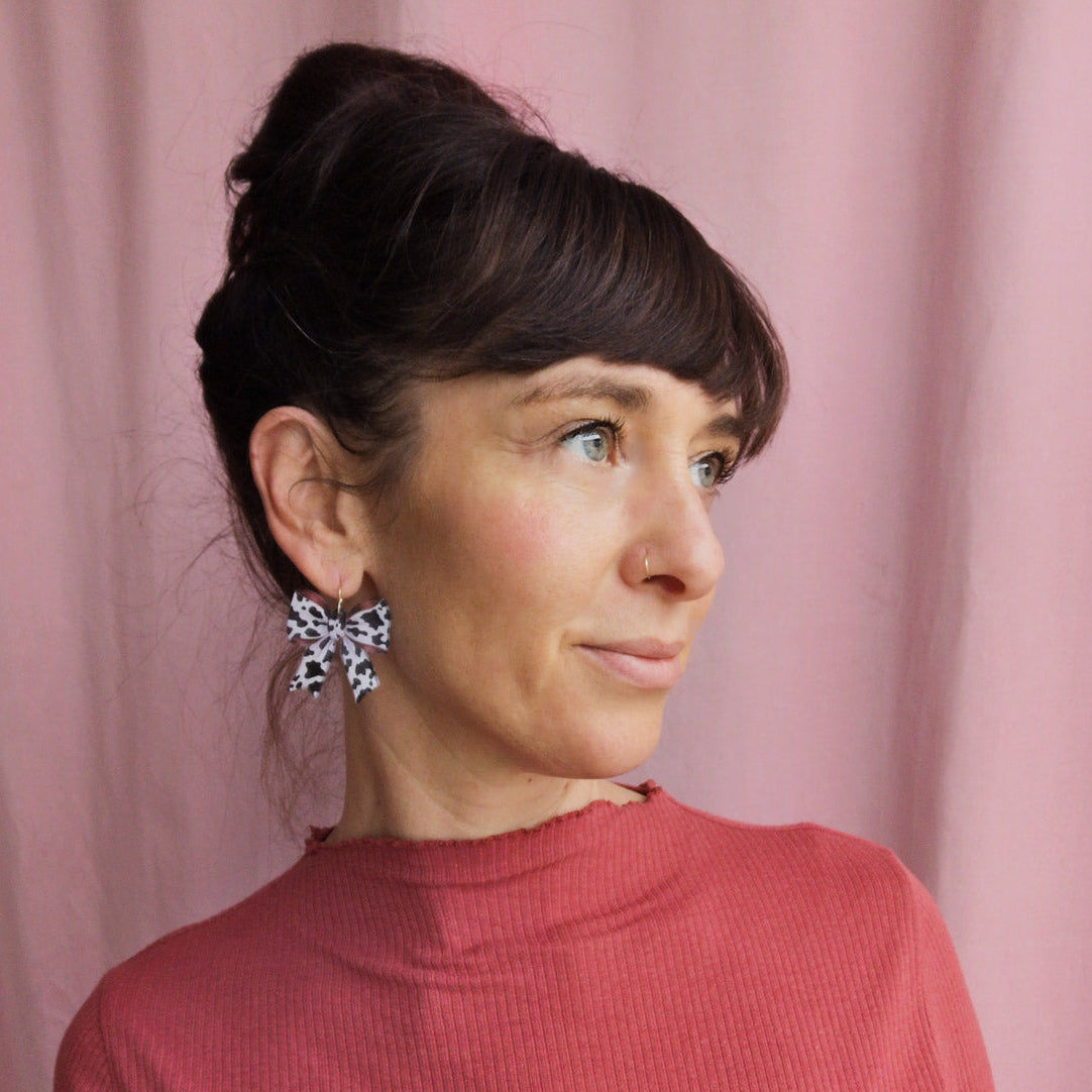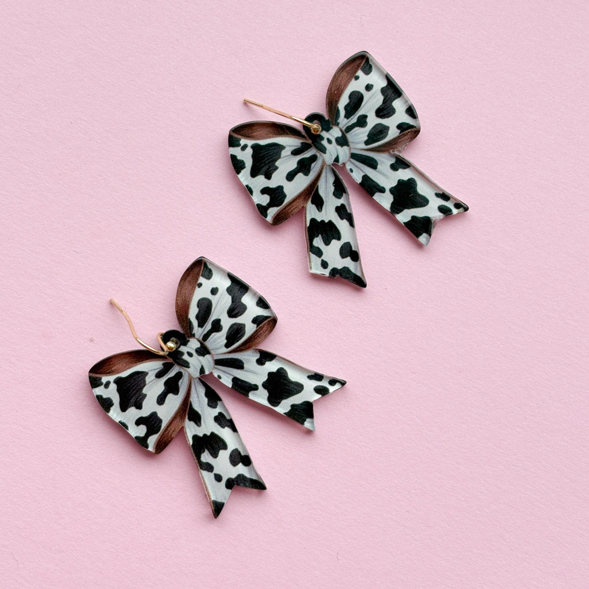 Kontrastreich, verspielt und mit klarer Attitude: Diese Schleifen-Ohrringe im Dalmatiner-Print sind gemacht für Looks mit Persönlichkeit. Das ikonische Schwarz-Weiß-Muster trifft auf eine feminine Form und verleiht jedem Outfit sofort einen Hauch Rockabilly, Retro und selbstbewussten Stil.